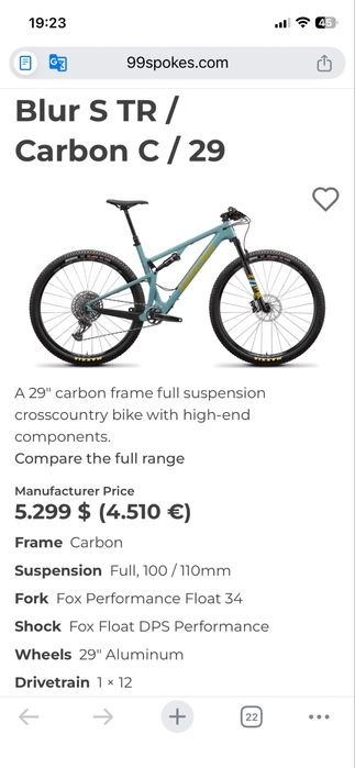 Mtb/bicicleta /L /29” carbon full suspension SANTA CRUZ Blur S TR