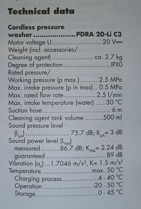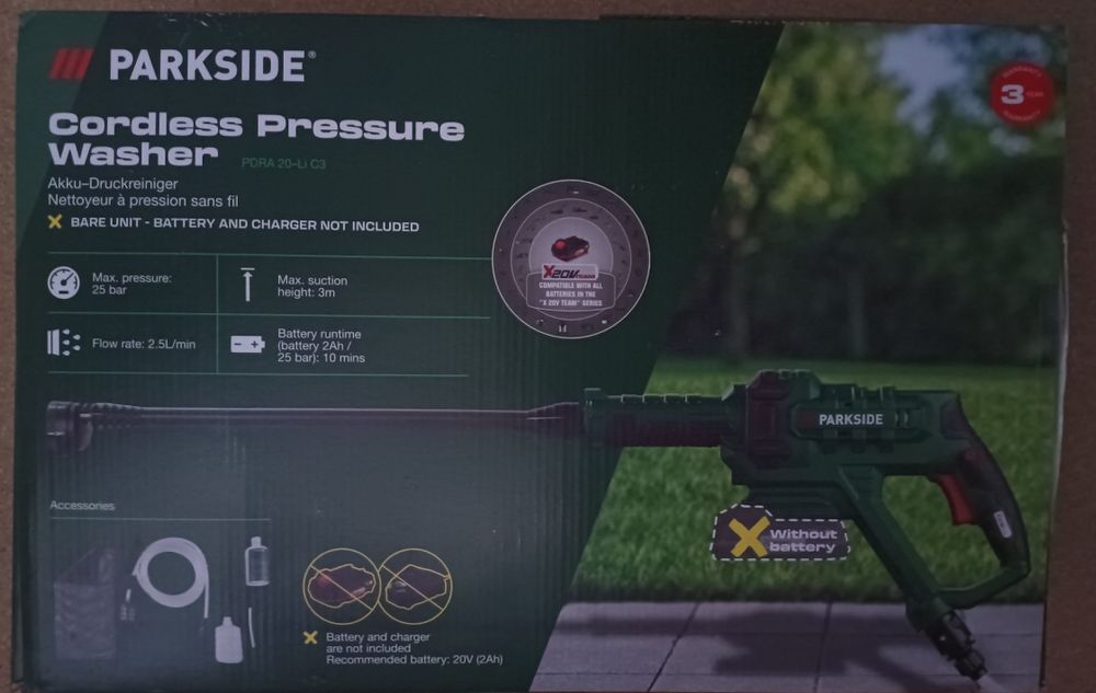 Parkside pistol presiune pe baterie 20V aparat de curatat cu presiune
