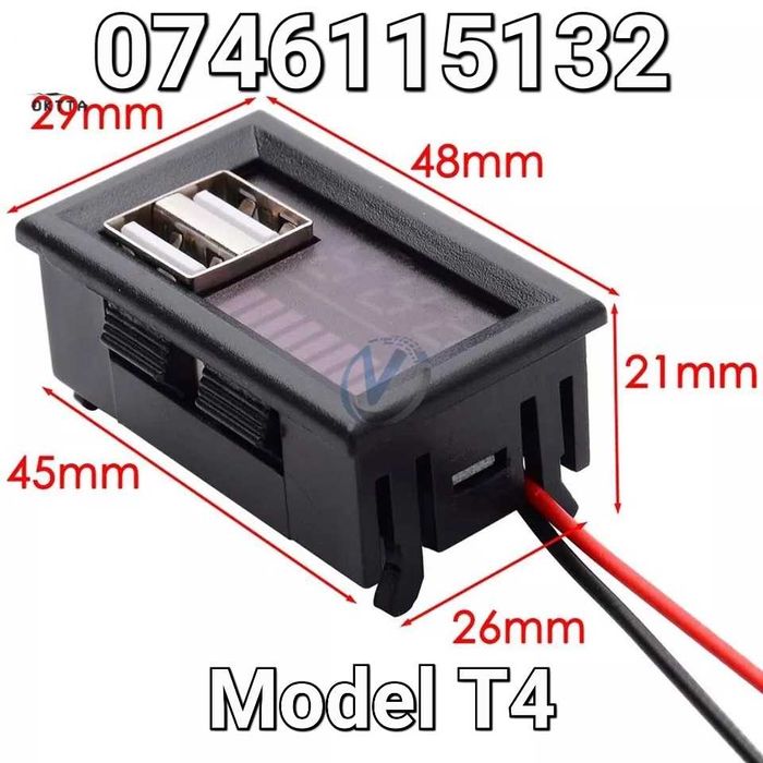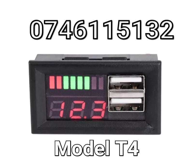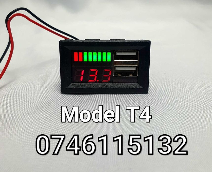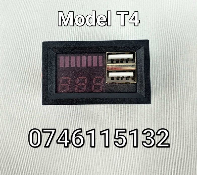 Voltmetru Auto Cu Afisaj Dublu+2 Iesiri USB-Ceas Incarcare Tractor- T4