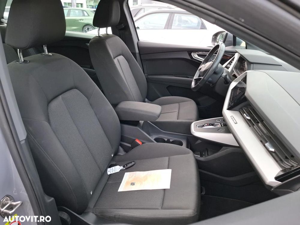 <p>Audi Q4 e-tron 35 170 CP Electric Automat</p><p>Prima înmatriculare: 09. 2022 , Model 2023</p><p>Mașină electrică, import, stare excelentă, autonomie 325 km, istoric complet.</p><p><br></p><p>- Transmisie automată, tracțiune spate<br>- Motor electric 170 CP, baterie 55 kWh<br>- Caroserie SUV, 5 uși, culoare gri<br>- Kilometraj: 62.468 km</p><p><br></p><p><br></p><p><br></p><p>-Interfață smartphone Audi</p><p>-Sistem de încărcare e-tron compact</p><p>-Geamuri acustice pentru geamurile ușilor față</p><p>-Omiterea numelui modelului și a logo-ului de putere/tehnologie</p><p>-Încălzire scaune față</p><p>-Jante aerodinamice cu 5 spițe W, Gri Grafit, finisaj lucios, 8.0J x 19, anvelope 235/55!255/50 R19</p><p>-Avertizare la părăsirea benzii de rulare</p><p>-Priză(i) de 12 volți</p><p>-Sistem de parcare plus</p><p>-Conector intern tip E/F, 8A, drept, pentru sistemul de încărcare e-tron</p><p>-Pilot automat cu limitator de viteză</p><p>-Interfață Bluetooth</p><p>-Pachet asistență</p><p>-Telecomandă și control Audi connect pentru MMI basic</p><p>- Aer condiționat staționar Comfort</p><p>-Sistem acustic de avertizare a vehiculului</p><p>-Vehicule cu măsuri speciale de modernizare</p><p>-Suprafețe accentuate, negru mat</p><p>-Amortizare șocuri în față</p><p>-Transmisie pentru acționare electrică (1 treaptă)</p><p>-Încărcător de bord până la 7,2 kW (AC)</p><p>-Sistem automat de climatizare</p><p>-Încărcarea bateriei DC (tip 2)</p><p>-Motor electric, putere sistem 125 kW motor de bază este N06/N07/N10/T3U</p><p>-Apel de urgență și service Audi connect</p><p>-Iluminare interioară</p><p>-Transmisie audio digitală</p><p>- Pedale și suport pentru picioare standard</p><p>-Indicator de service 2 ani (fix) fără km, vehicul electric</p><p>-Bară stabilizatoare față</p><p>-Bară stabilizatoare spate</p><p>-Covorașe față și spate</p><p>-Zone climatice standard</p><p>-Etichetă specială de identificare (UE)</p><p>-Suspensie confort</p><p>-Echipamente pentru jante din aliaj</p><p>-Servodirec